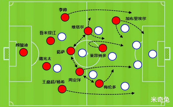 因为梅伦多有一部分的边前腰属性,莱昂纳多回撤、梅伦多内收后,加布里埃尔可以作为箭头突前,周定洋的价值就是他是中超最好的B2B,具备后排前插得分的效果,利用到莱昂纳多回撤后留下的空间,也给莱昂纳多二次跟进提供机会。